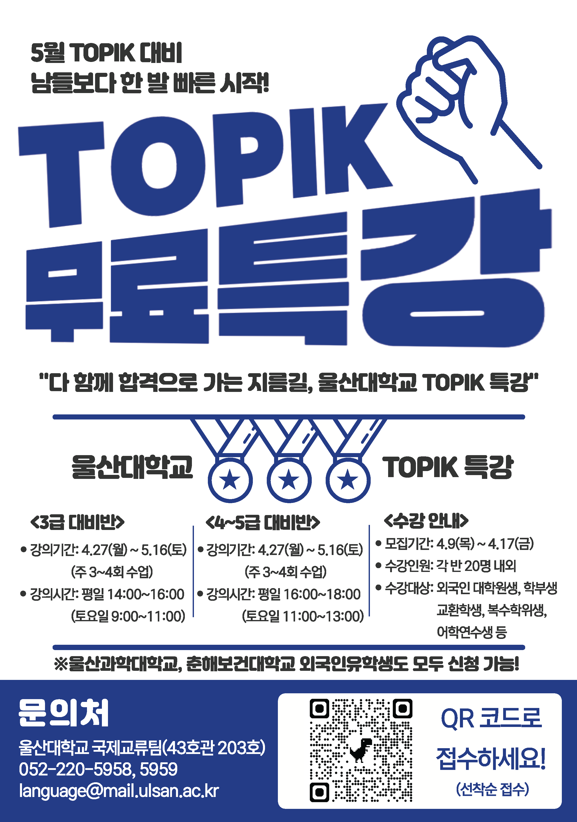 [울산대학교 2026년 5월 TOPIK 대비 특강 신청]