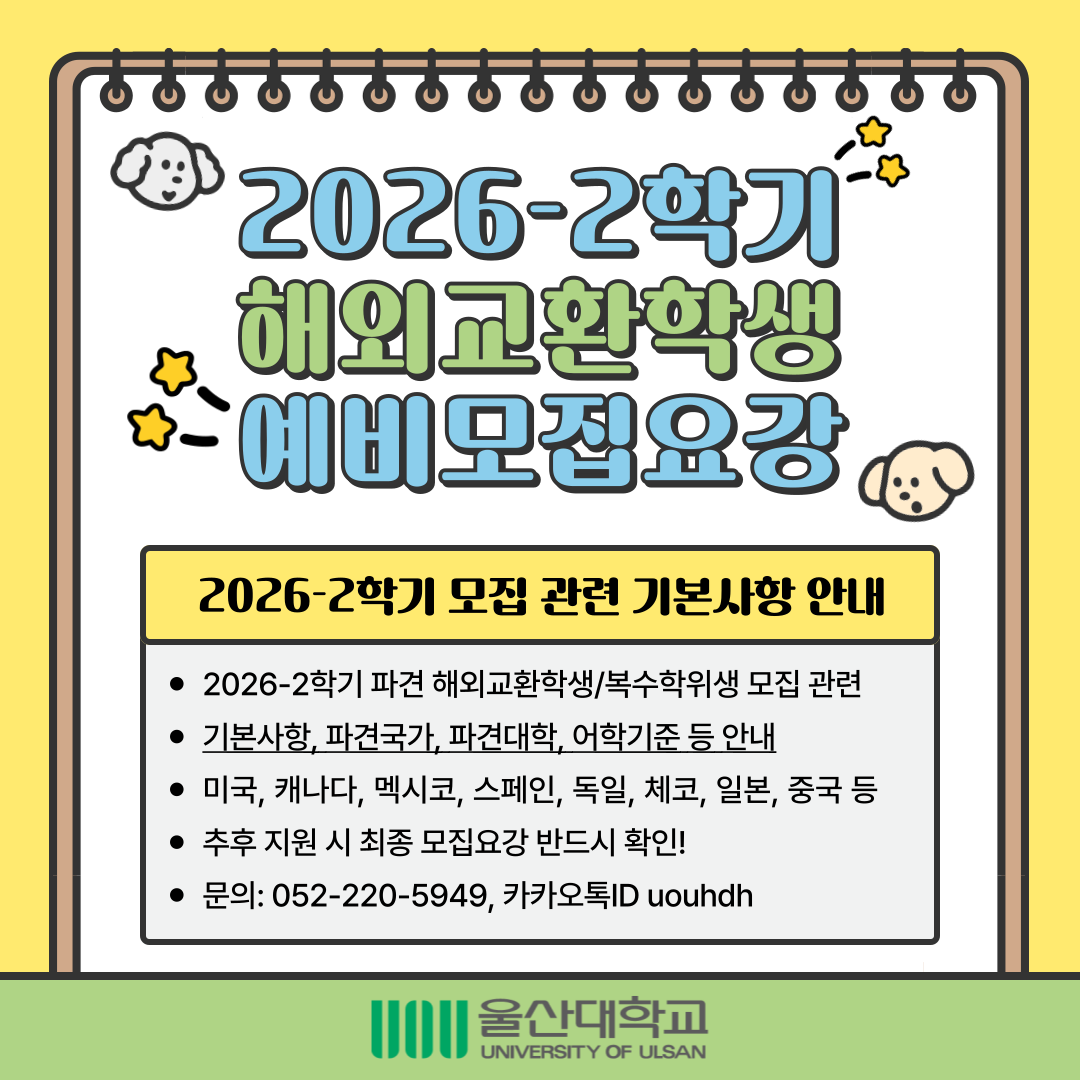 [국제] 2026-2학기 해외교환학생/복수학위생 선발 예비모집요강 공고